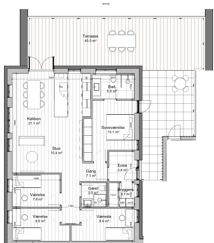 5-værelses lejlighed på 135 m2 med tagterrasse